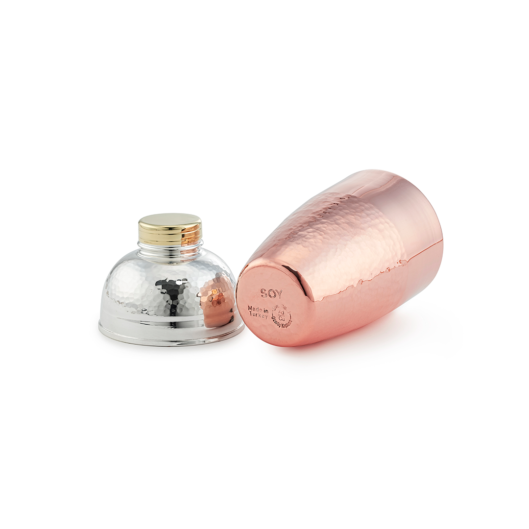 Like all Soy Shakers, the Şakirt has an outer body made of pure copper and silver, with the notable difference of sporting an elegant brass cap combined with a spin-fused stainless steel strainer.