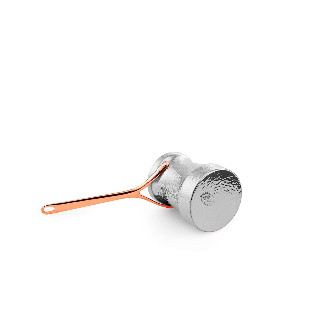 -Is then mounted on the Cezve using Pure Silver rivets, after being bathed to gain a 15µ Copper Plating, that will give it its distinctive pinkish hue, unique to us in the Industry.