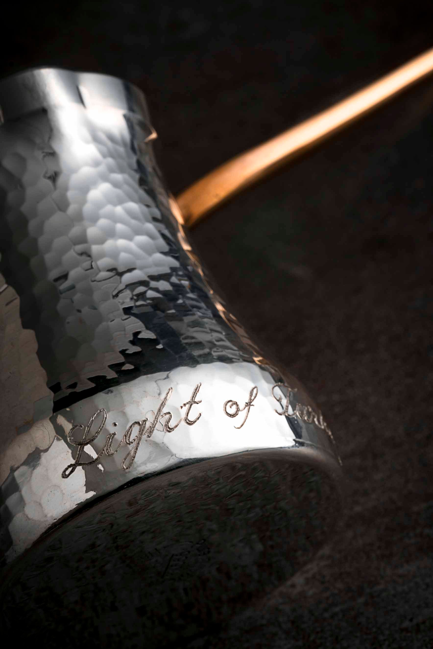 Is cast from our own patented alloy of bronze, and has superior refractive qualities that keep it cold and touchable when the Cezve is on blazing fire.